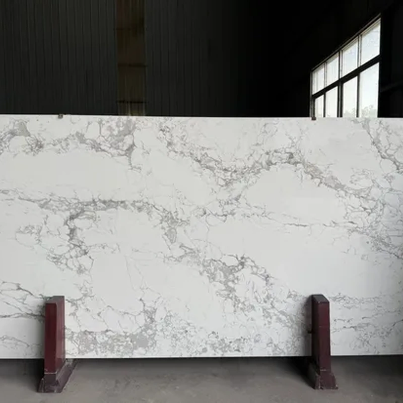 Keywords: Calacatta White Quartz Stone Kitchen Island Countertop, recycled stone, sintered stone, kitchen countertop, bathroom vanity, commercial stone, wholesale stone, factory direct