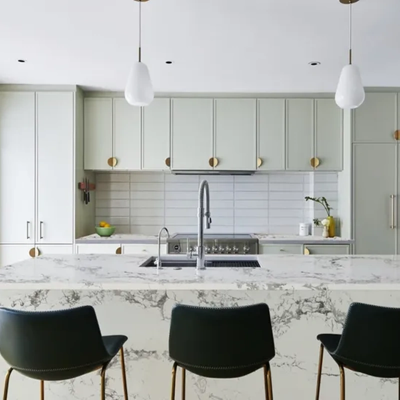 Beyond our stunning Calacatta white pattern, we offer custom color matching services where you can send us photos and we will work to create the exact quartz appearance you envision for your dream kitchen island.